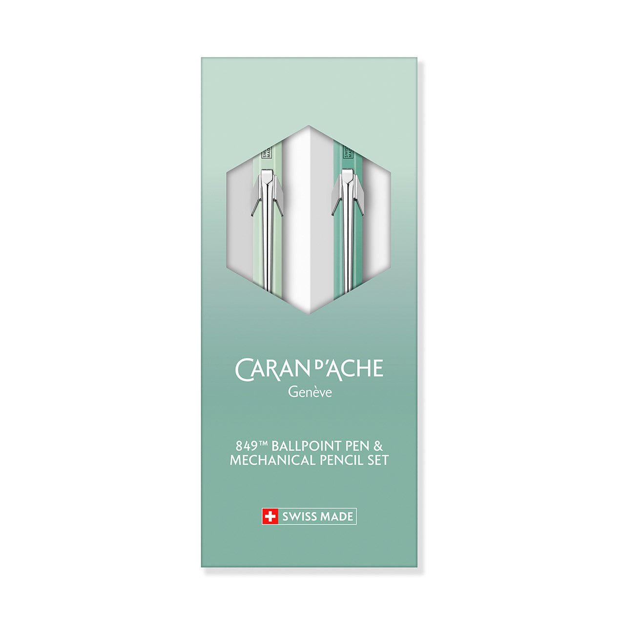 Featuring complementary gradient finishes in chilly yet invigorating colours, the Misty Forest 849 Ballpoint and Mechanical Pencil Set pairs two of the most popular writing instruments in the Caran d’Ache range. The 849 has been a perfect everyday companion since its introduction in 1969, with a rugged yet lightweight construction that means you’re always ready to write. Slim and retractable, with an aluminium body, flexible clip and push button, the 100% Swiss-made 849 guarantees writing comfort and reliability.